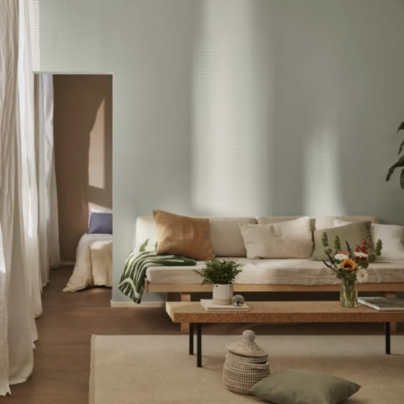 Туманное утро на берегу моря. Нежный оттенок, в котором свет раскрывает вспышки зеленого, серого и голубого. Морской туман привносит в кухню современный бриз.