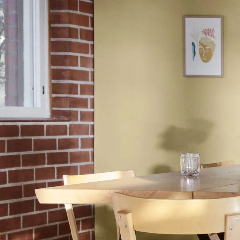 Не совсем бежевый и не совсем желтый — если вам нравится желтый, но вы немного боитесь его использовать, цвет Соломинка идеально подойдет. Он уютный, деревенский и естественный.