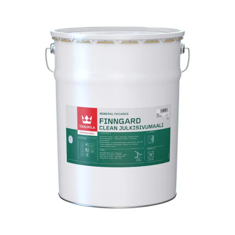 Finngard Clean -julkisivumaali — это фасадная краска для бетонных наружных стен, обеспечивающая грязе- и водоотталкивающую поверхность. Окрашенный фасад остается чистым даже в условиях загрязненной атмосферы. Finngard Clean -julkisivumaali предотвращает оседание грязи из загрязненного воздуха, создавая защитный барьер. Благодаря гидрофобной, не прилипающей поверхности, краска эффективно отталкивает почву и воду, сохраняя конструкцию сухой и чистой. Окрашенные фасады легко мыть при необходимости.