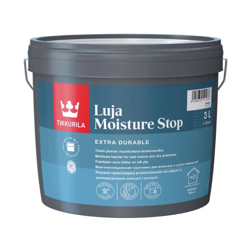 Luja Moisture Stop создаёт преграду для проникновения водяного пара и дополнительно защищает окрашенные поверхности от влаги в сухих и влажных помещениях.