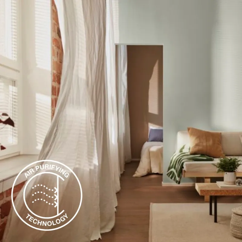 Высококачественная краска обладает повышенной кроющей способностью. Harmony Clean Air эффективно скрывает недостатки и создает красивую поверхность.